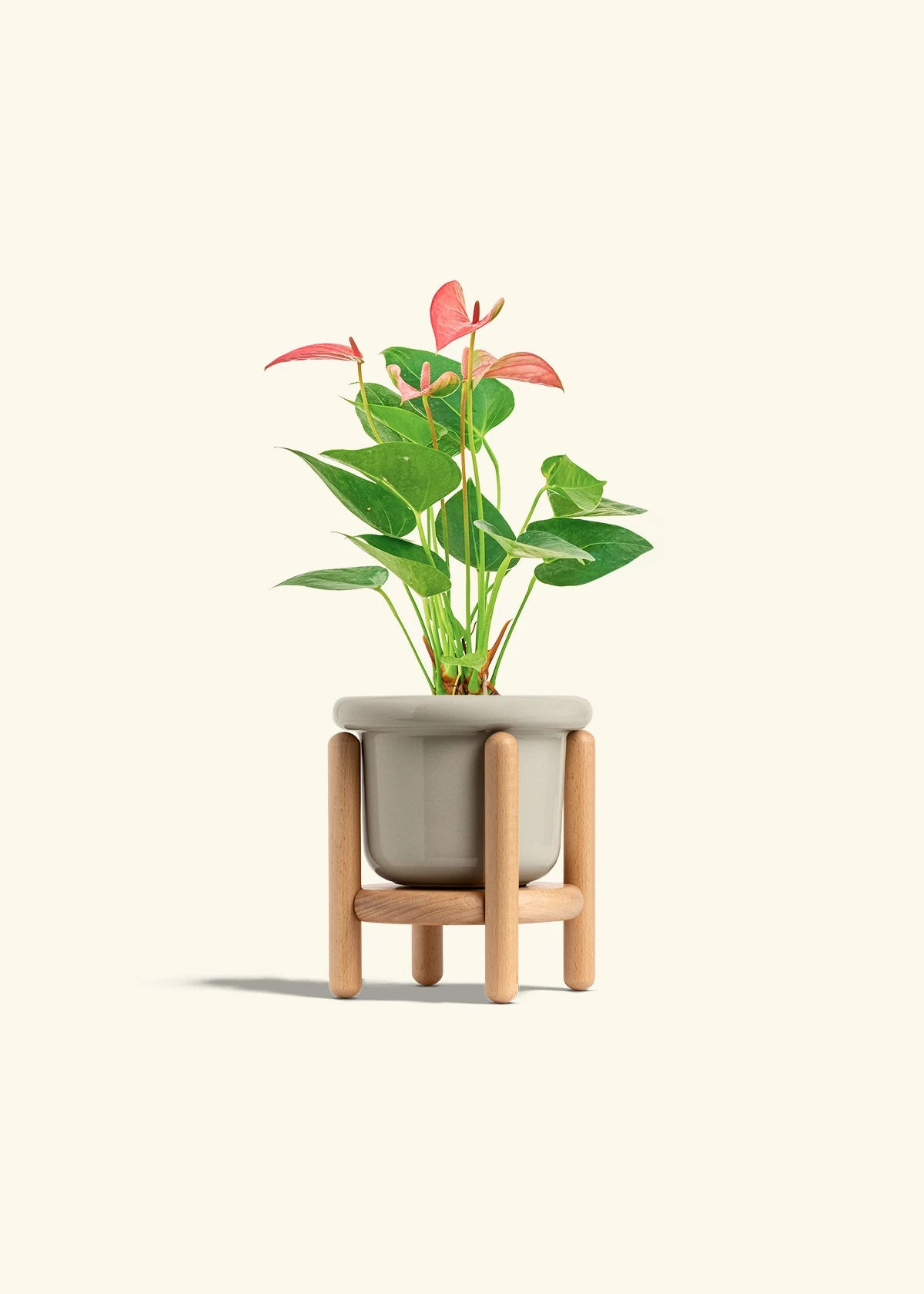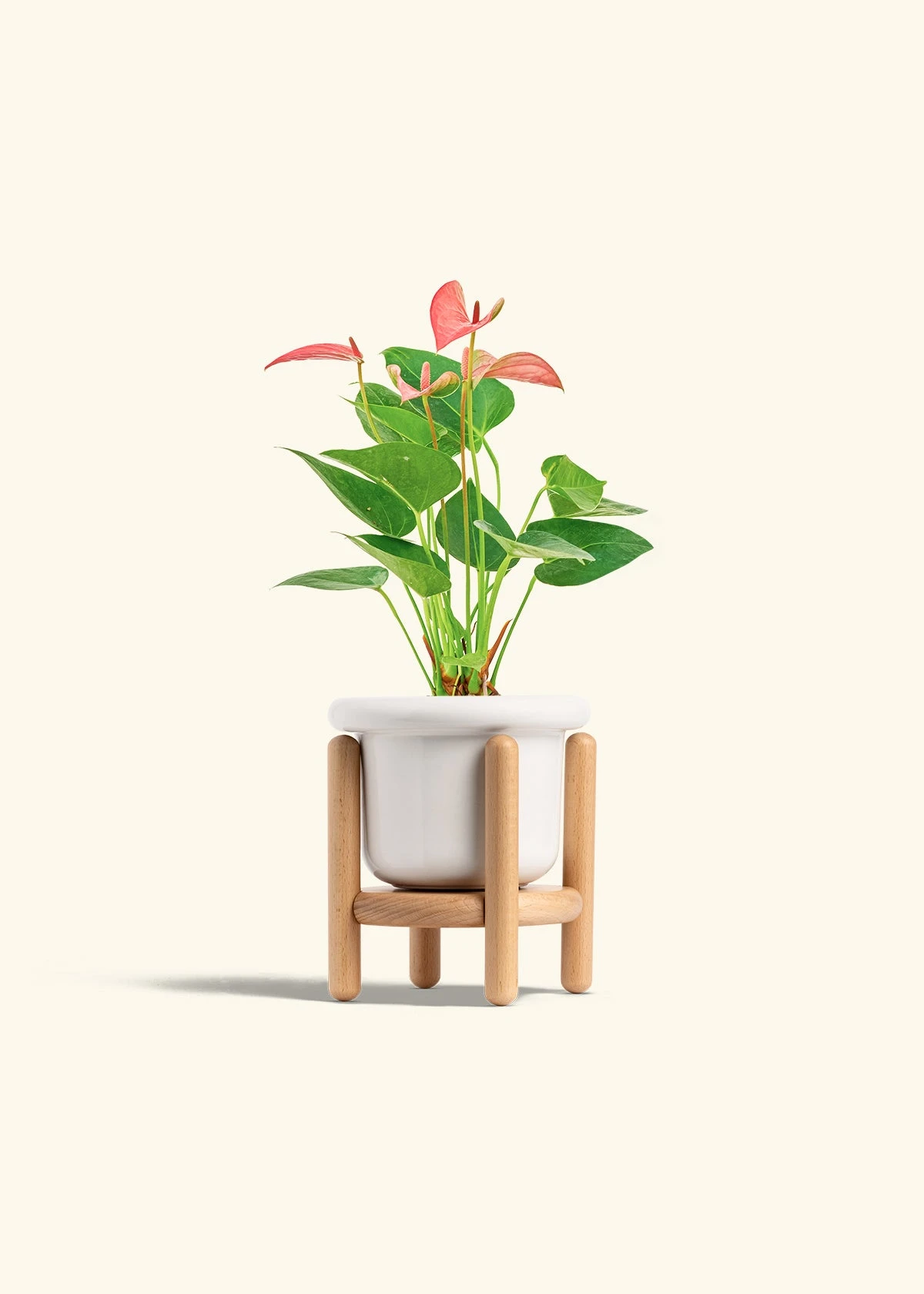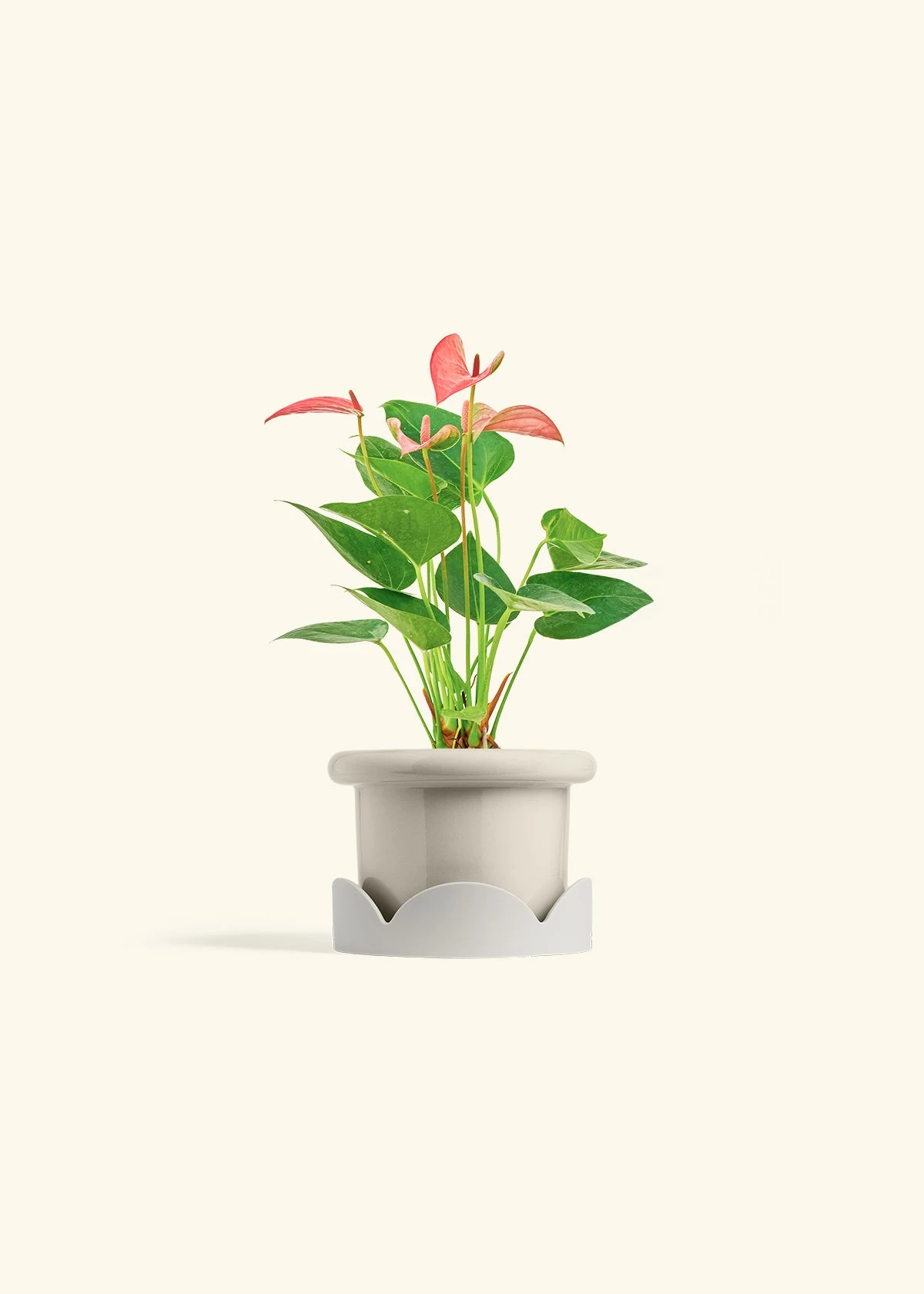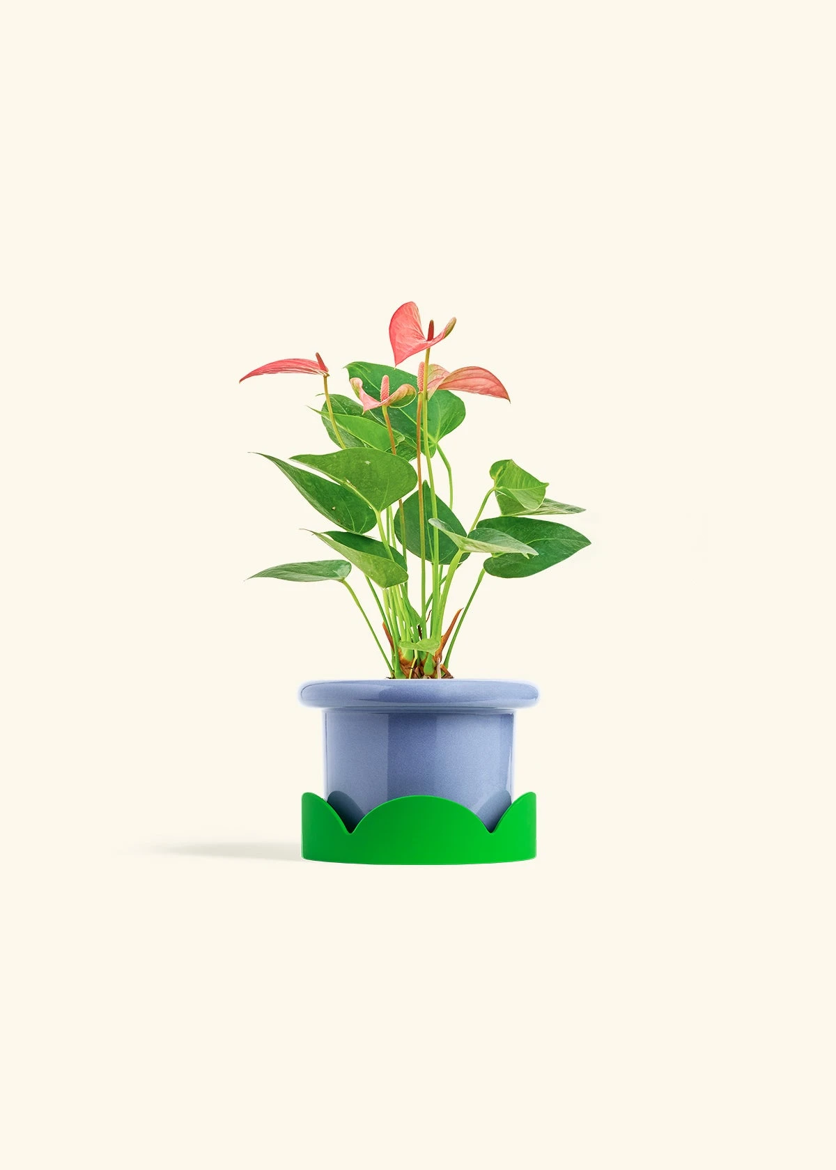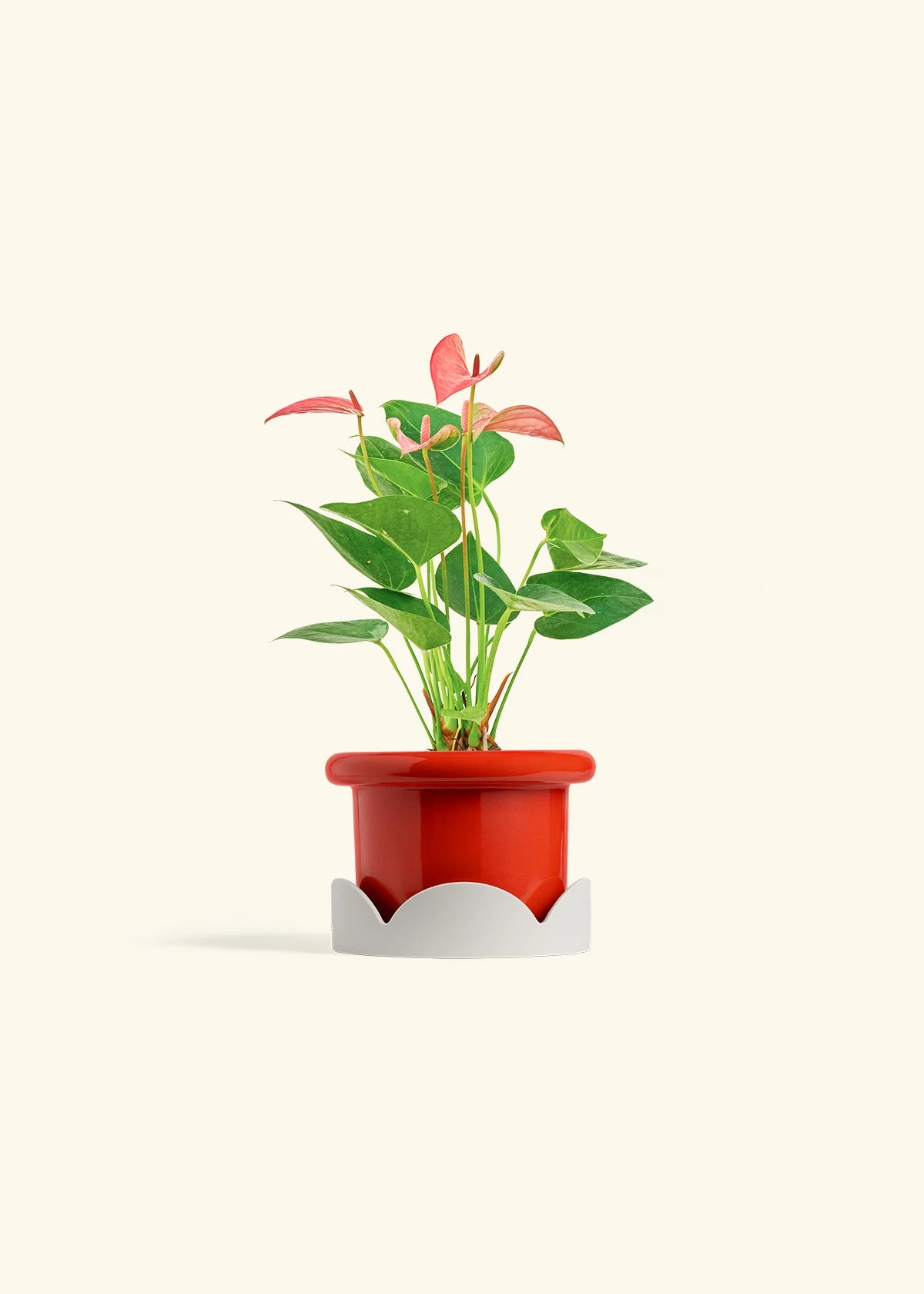 This anthurium has beautiful, pink, heart-shaped “flowers” which are actually morphed leaves called spathes. Anthurium spathes are brightly colored to attract pollinators to the spadix (the flower spikes in the middle). It’s fairly low-maintenance, and blooms can last for 2-3 months in the right conditions.
