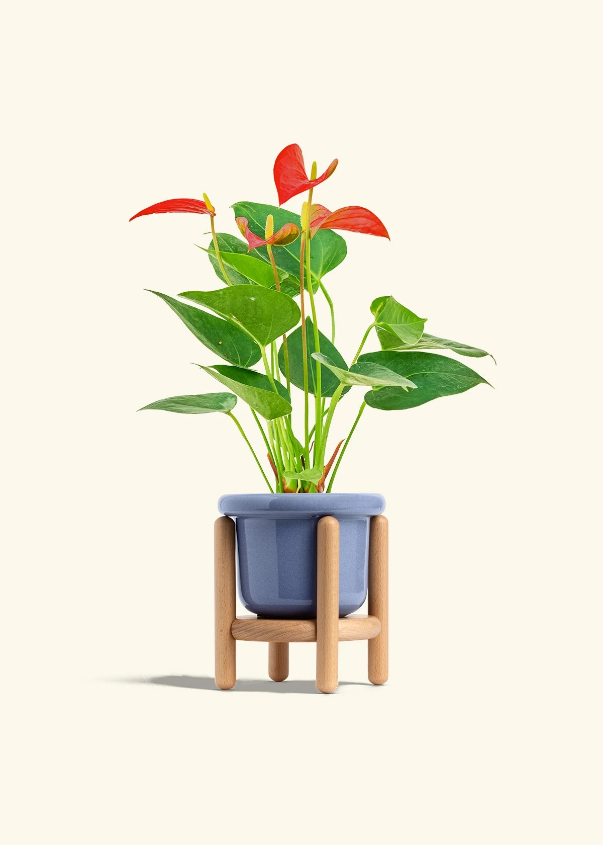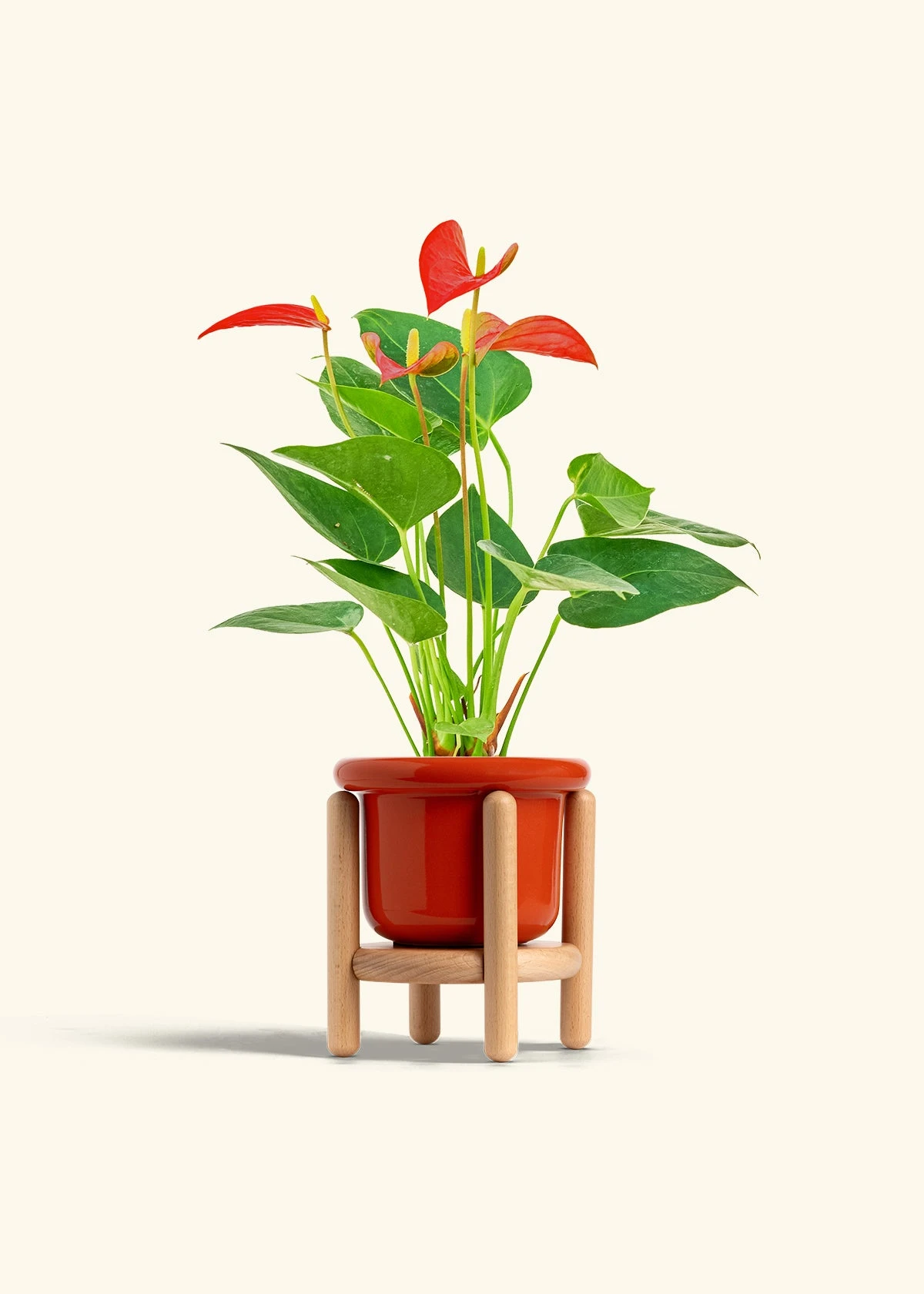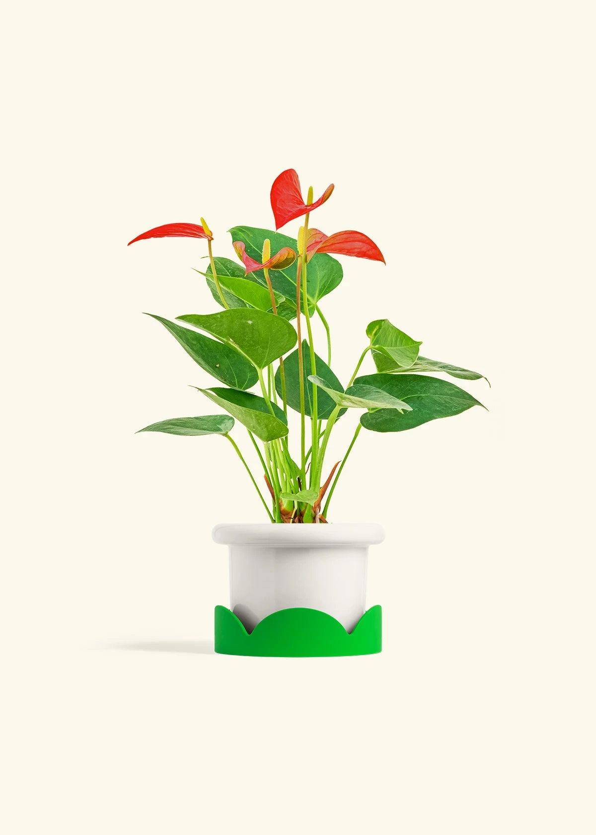 This anthurium has beautiful, red, heart-shaped “flowers” which are actually morphed leaves called spathes. Anthurium spathes are brightly colored to attract pollinators to the spadix (the flower spikes in the middle). It’s fairly low-maintenance, and blooms can last for 2-3 months in the right conditions.