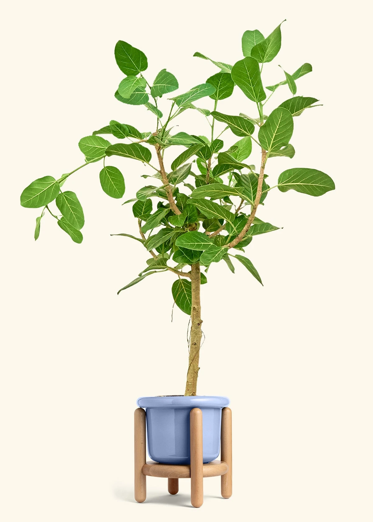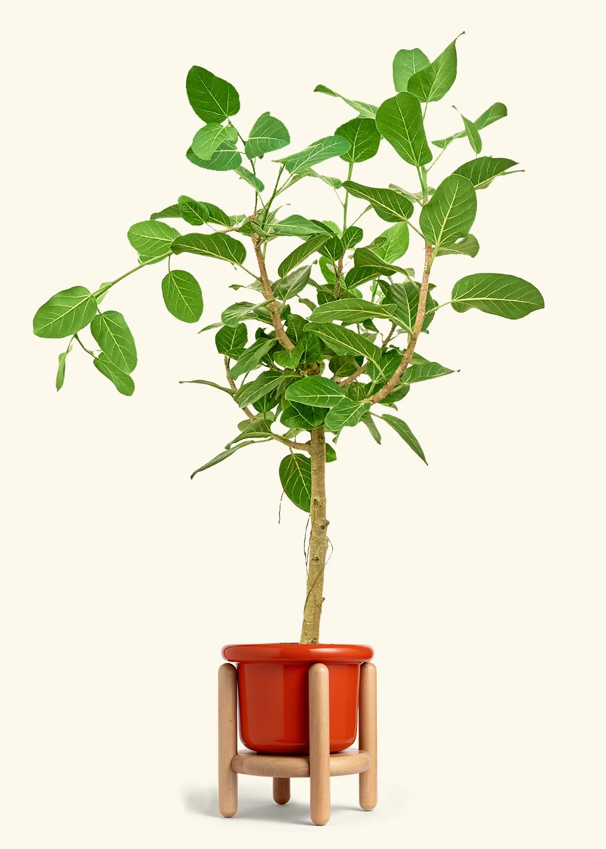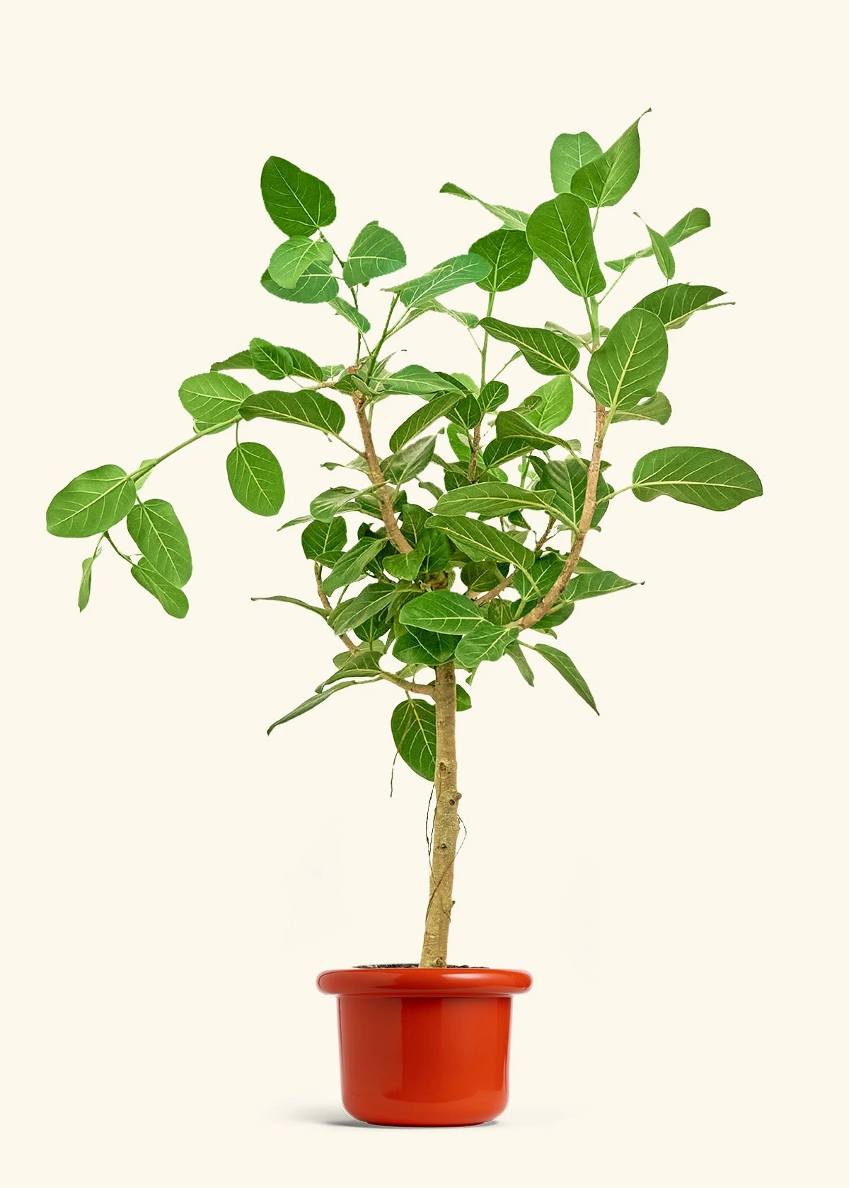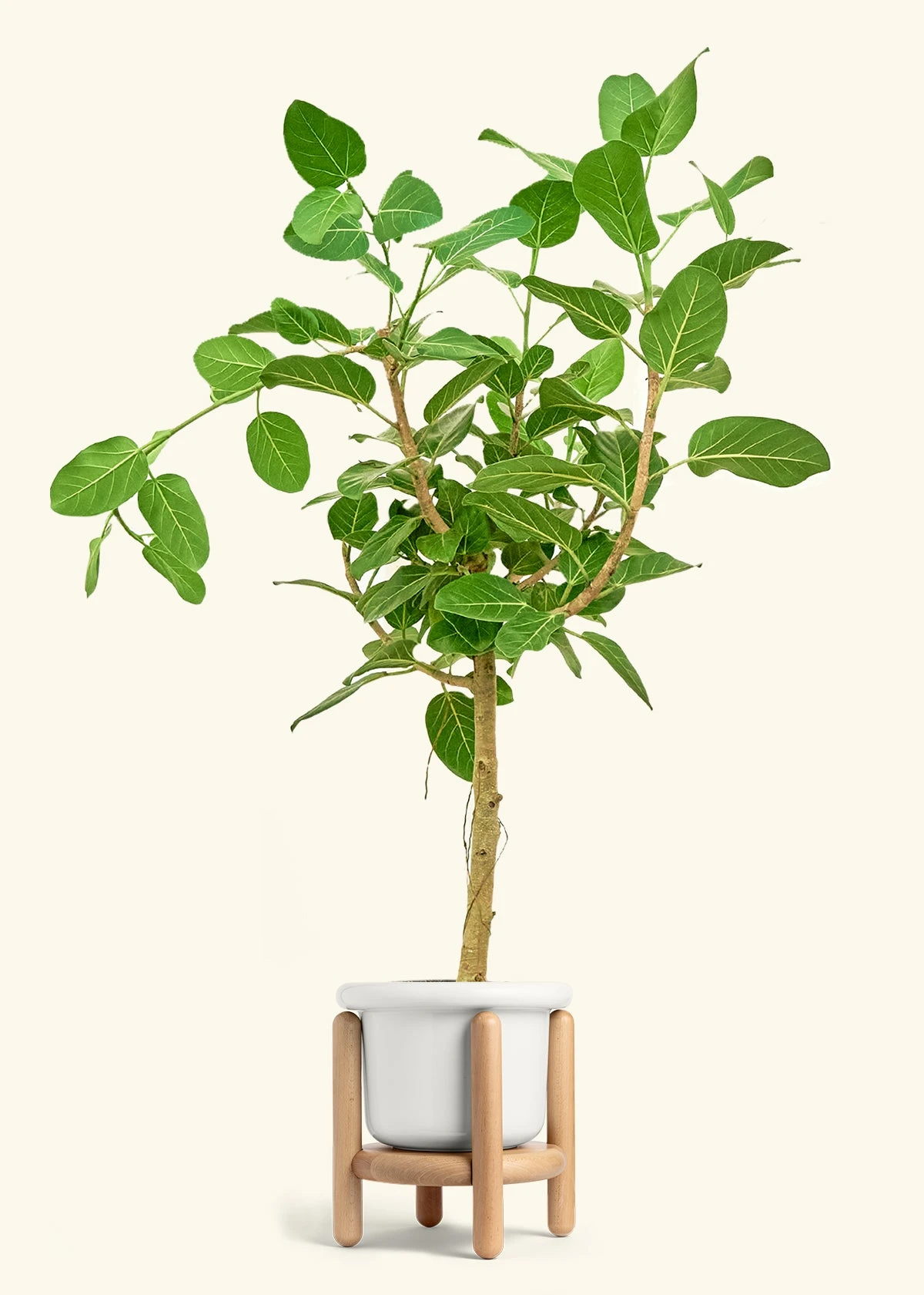 While its fiddle leaf fig cousin might have more followers on Instagram, the Ficus ‘Audrey’ has been gaining attention because of its low-maintenance needs in comparison. As it matures, its trunk becomes a beautiful birch-white, which looks lovely with the contrast of its deep green leaves and cream-colored veins.