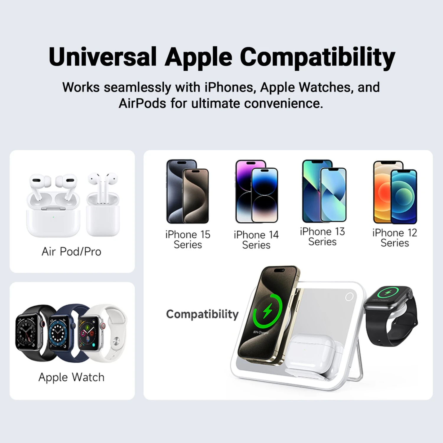 - Wireless Charge All Your Devices: Declutter your space – charge phone, watch, and headphones wirelessly.