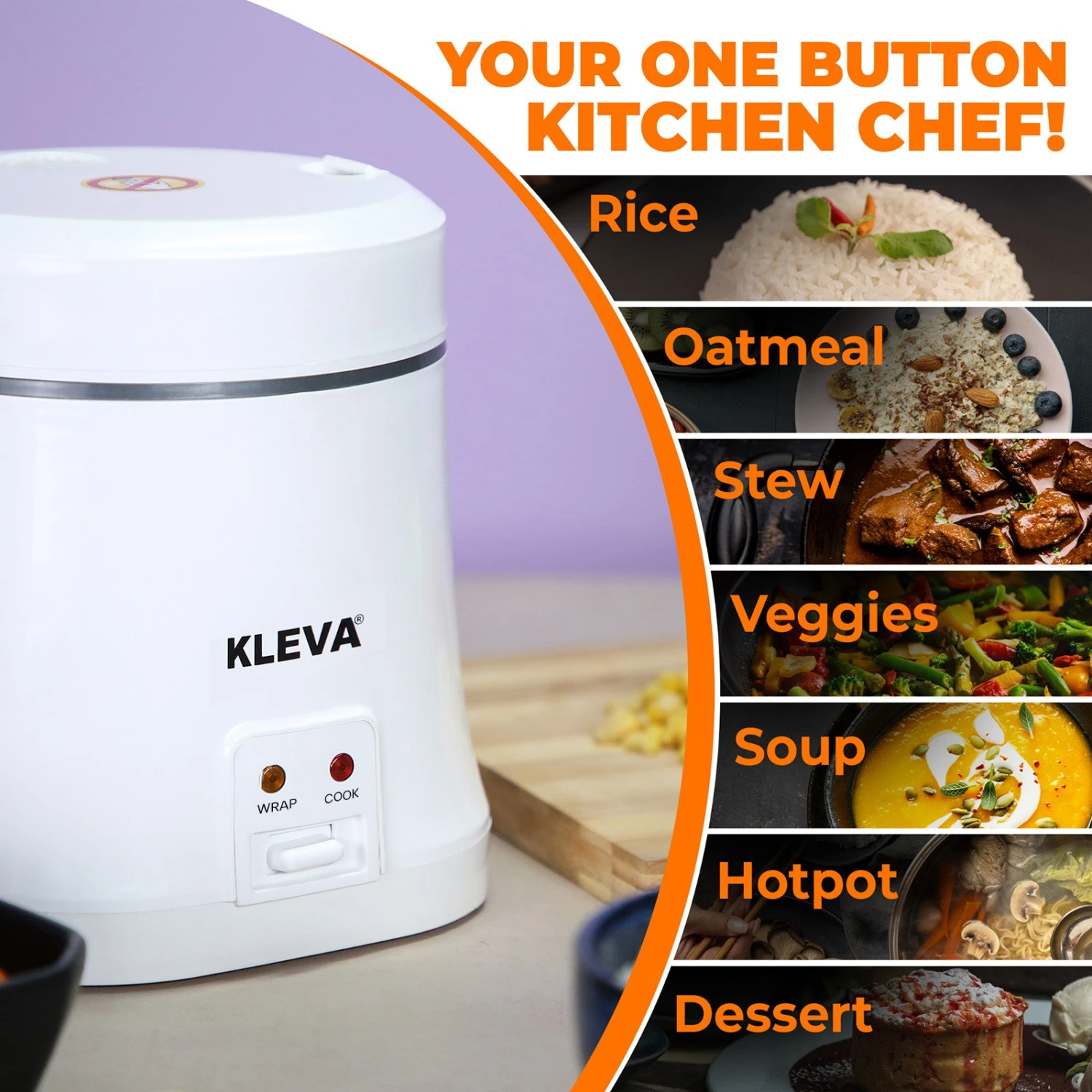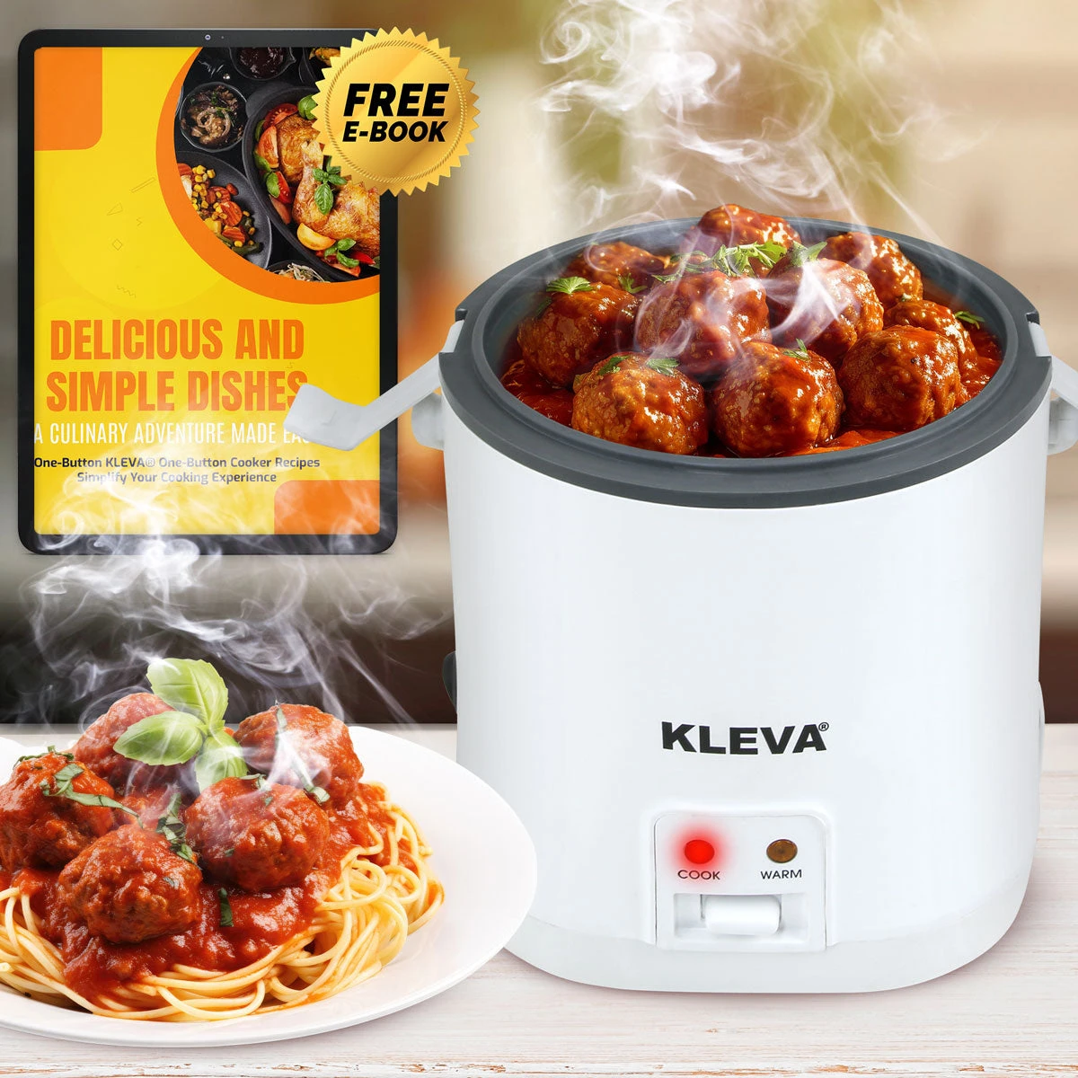 - Compact and Convenient: Designed to cater to couples and small families, our original Kleva One-Button Cooker boasts a compact size that fits perfectly in any kitchen. Embrace the convenience of a compact cooker that delivers exceptional results without taking up valuable counter space. For larger families or gatherings, we now offer the Kleva Plus Size Cooker, with 3X the capacity of the original mini version, making it ideal for feeding the whole family or hosting guests.
