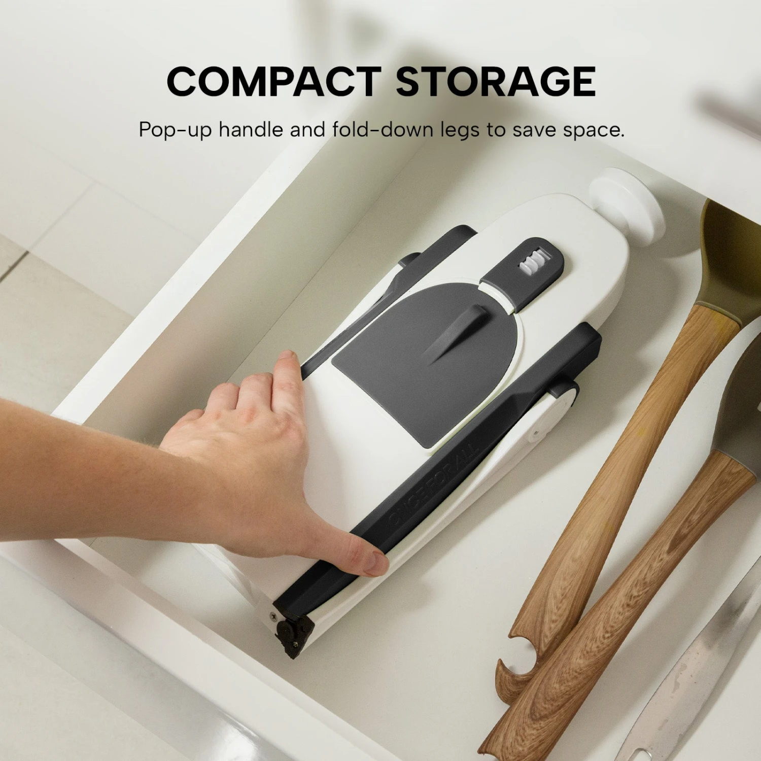 - Folds Flat for Compact Storage: Pop-up handle and fold-down legs save space.