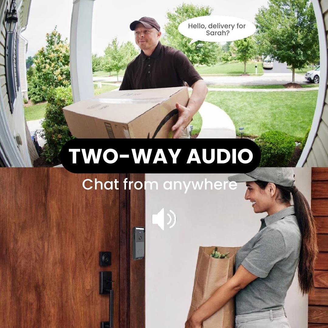 - Two-Way Audio: Talk to visitors directly from your phone or tablet.