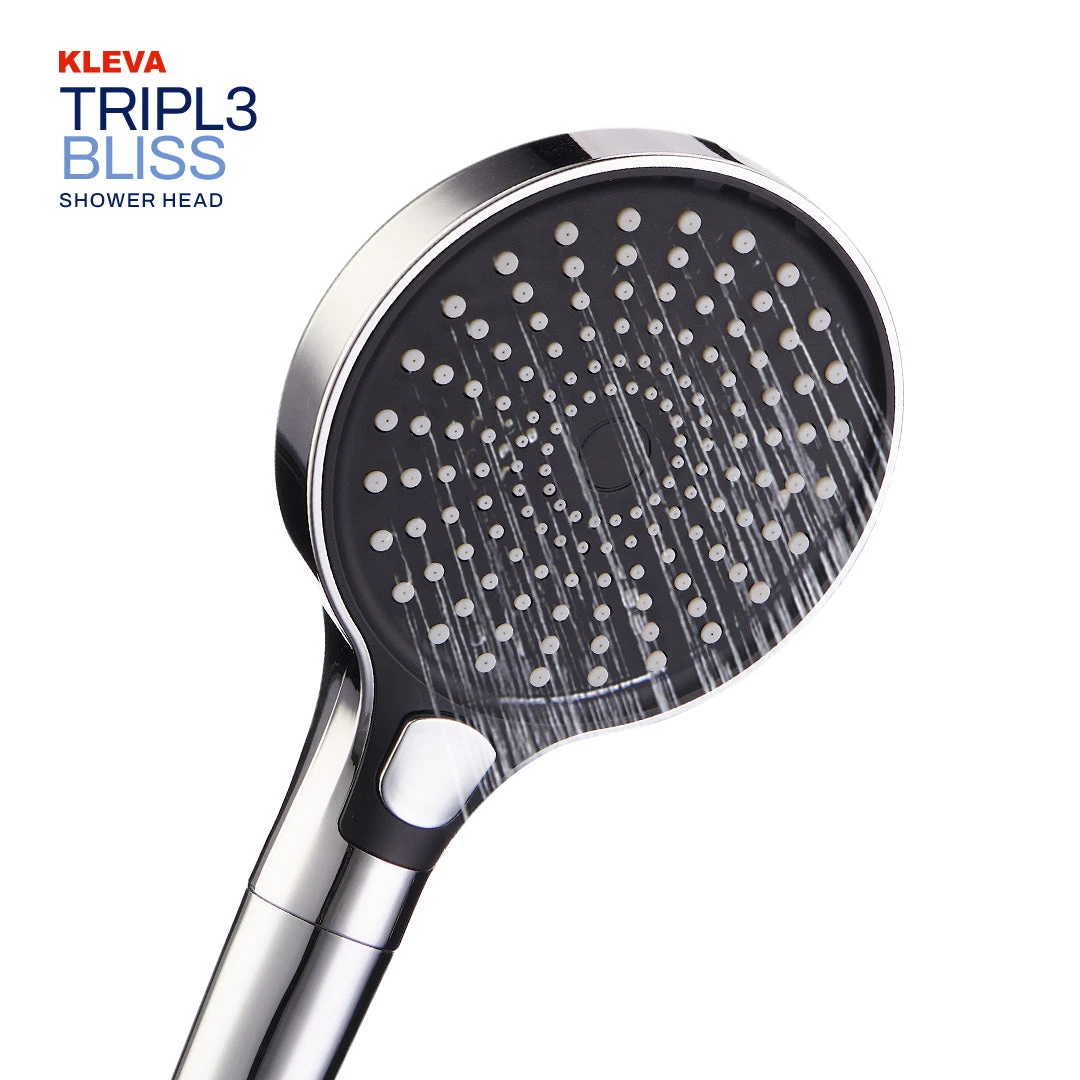 The Kleva Triple Bliss Filtered Shower Head is your solution for a revitalized shower experience, giving you softer water, healthier skin, and shinier hair every day.