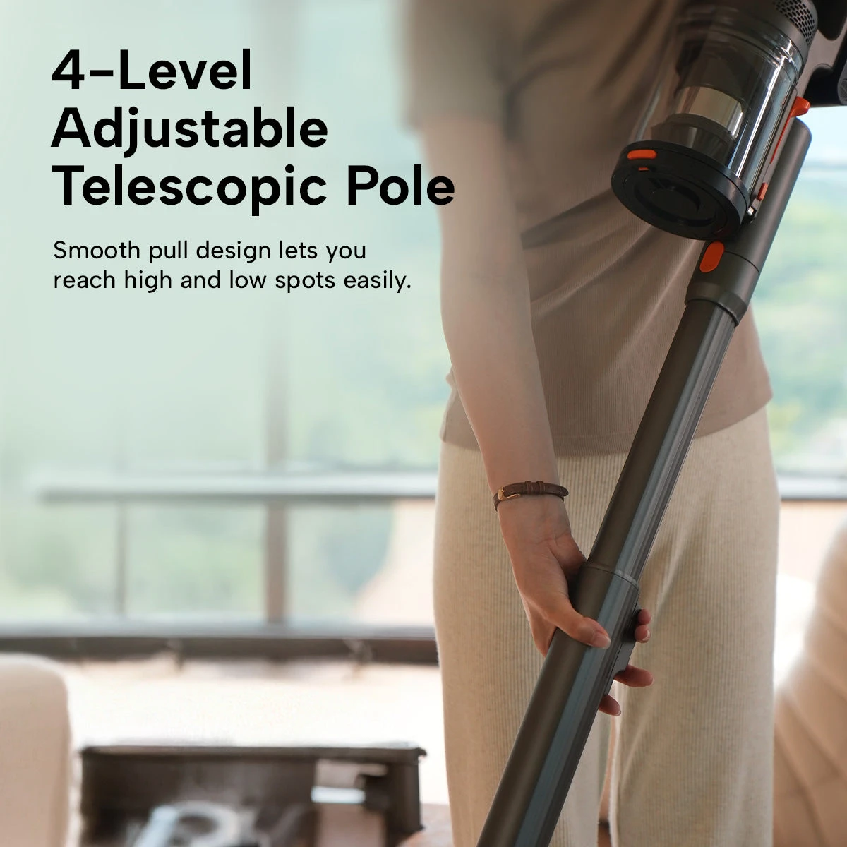 - Lightweight & Adjustable Design: Slim and easy to handle with a 4-level telescopic pole, perfect for all users.