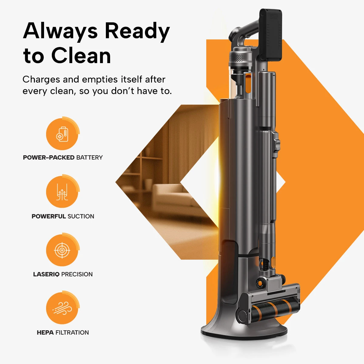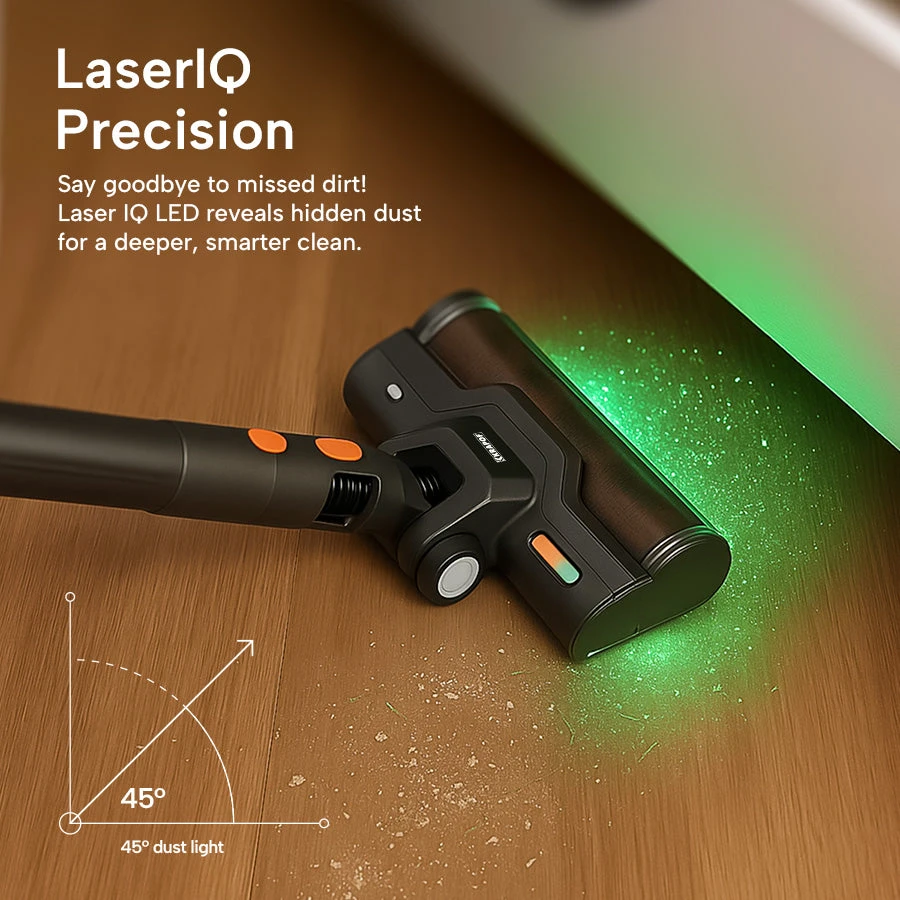 - LaserIQ Precision Lighting: Reveals hidden dust and debris, ensuring no spot gets missed.