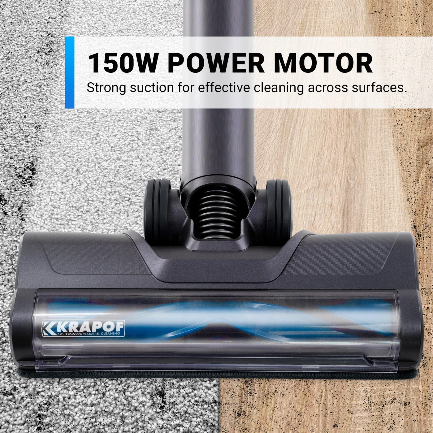 - Powerful 150W Motor: Strong suction for effective cleaning across surfaces.