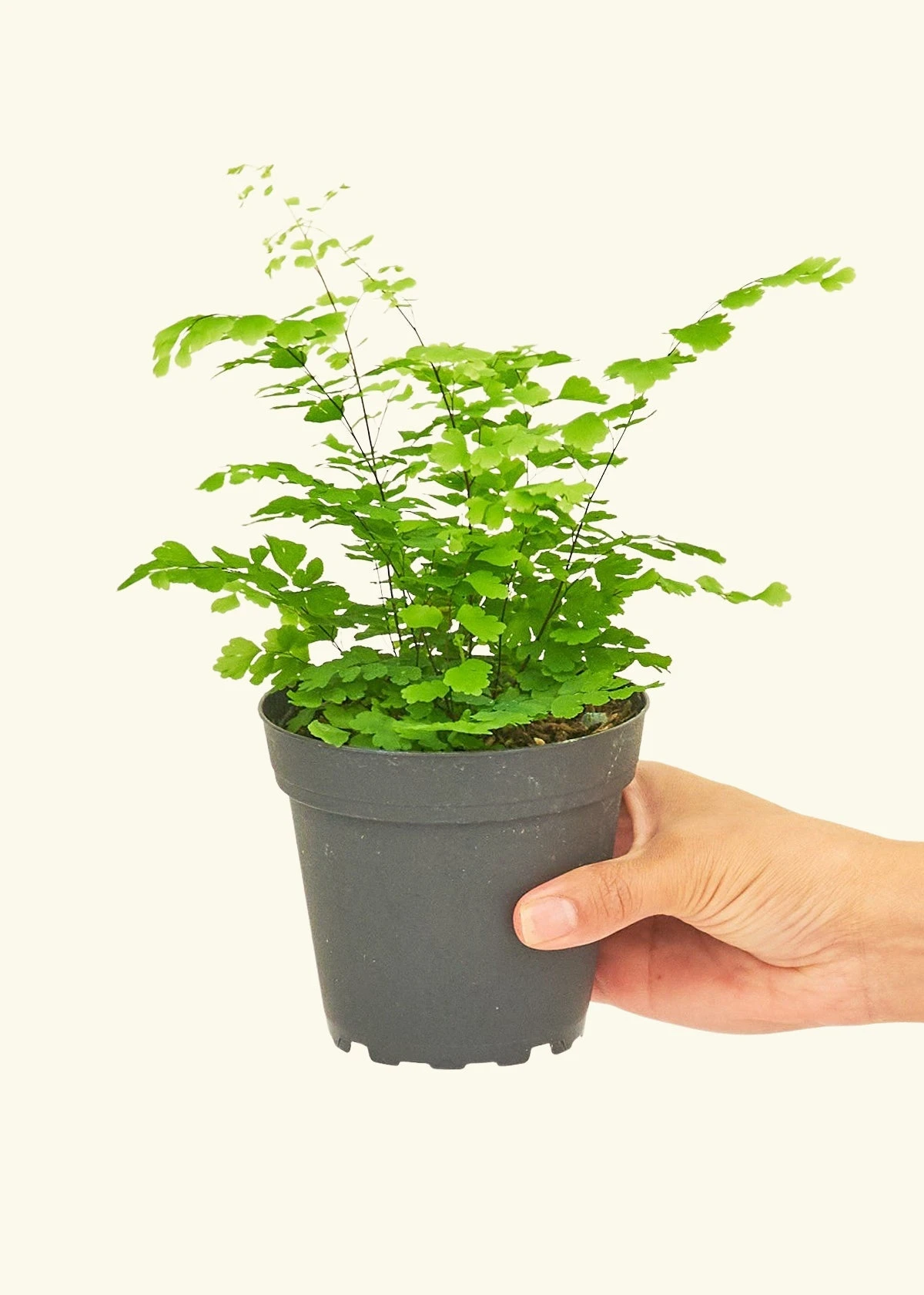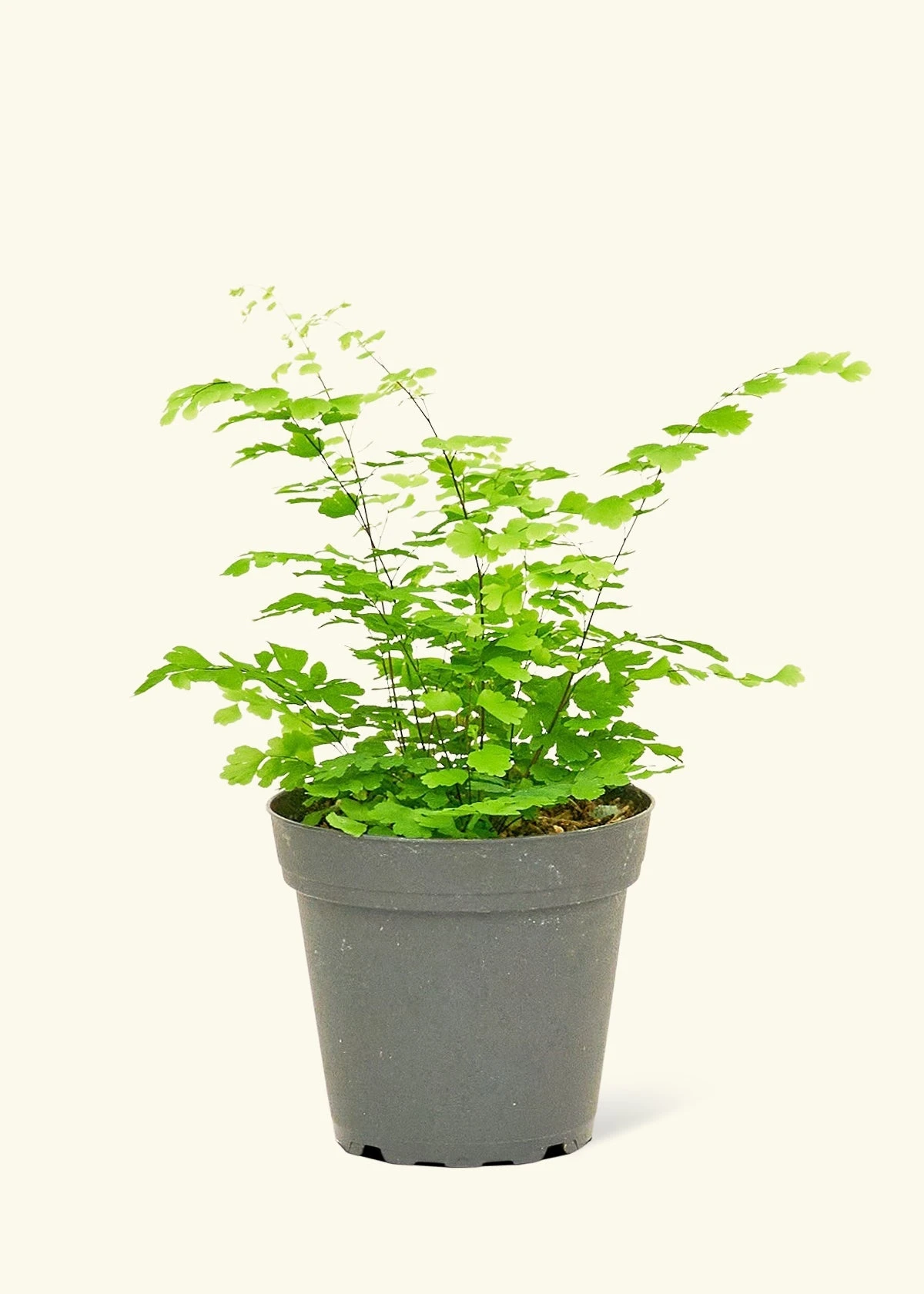 This fern is a delicate one, but treat it as such and it will reward you with beautiful new growth consistently. High humidity is important for upkeep, and it will thrive in sunlit bathrooms or in close proximity to other tropical plants.