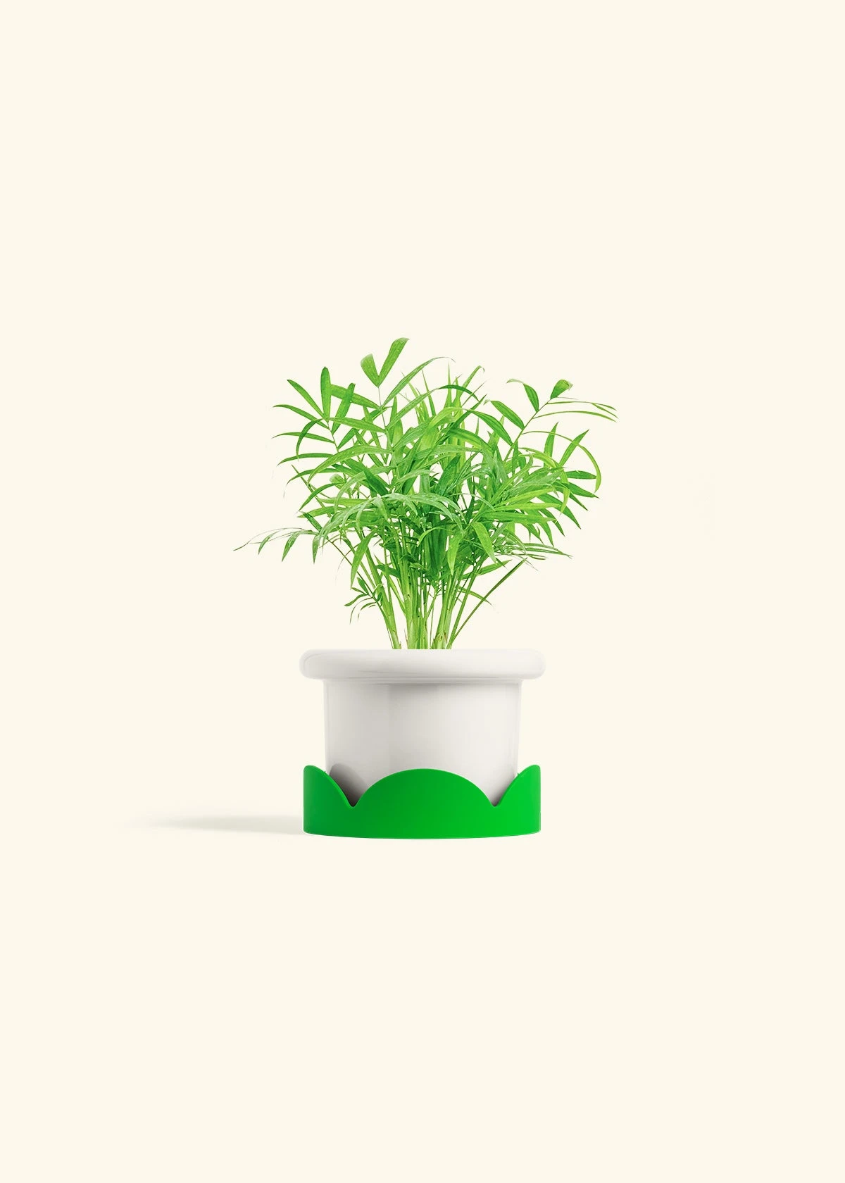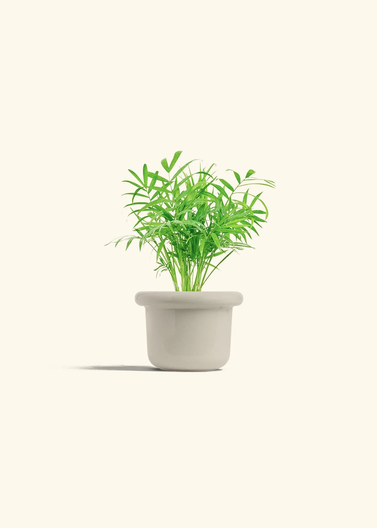Tiny tropical gem, anyone? Naturally, this compact palm is a slow grower, taking several years to reach 3-4 ft tall. It’s adaptable to most indirect light environments, and prefers soil to be evenly moist.