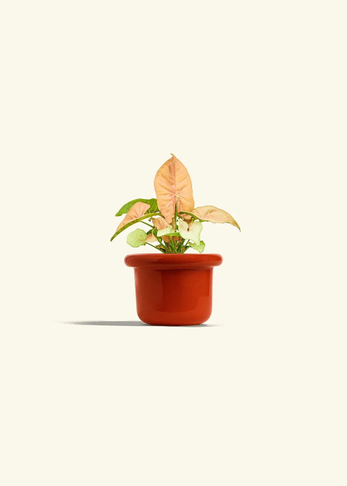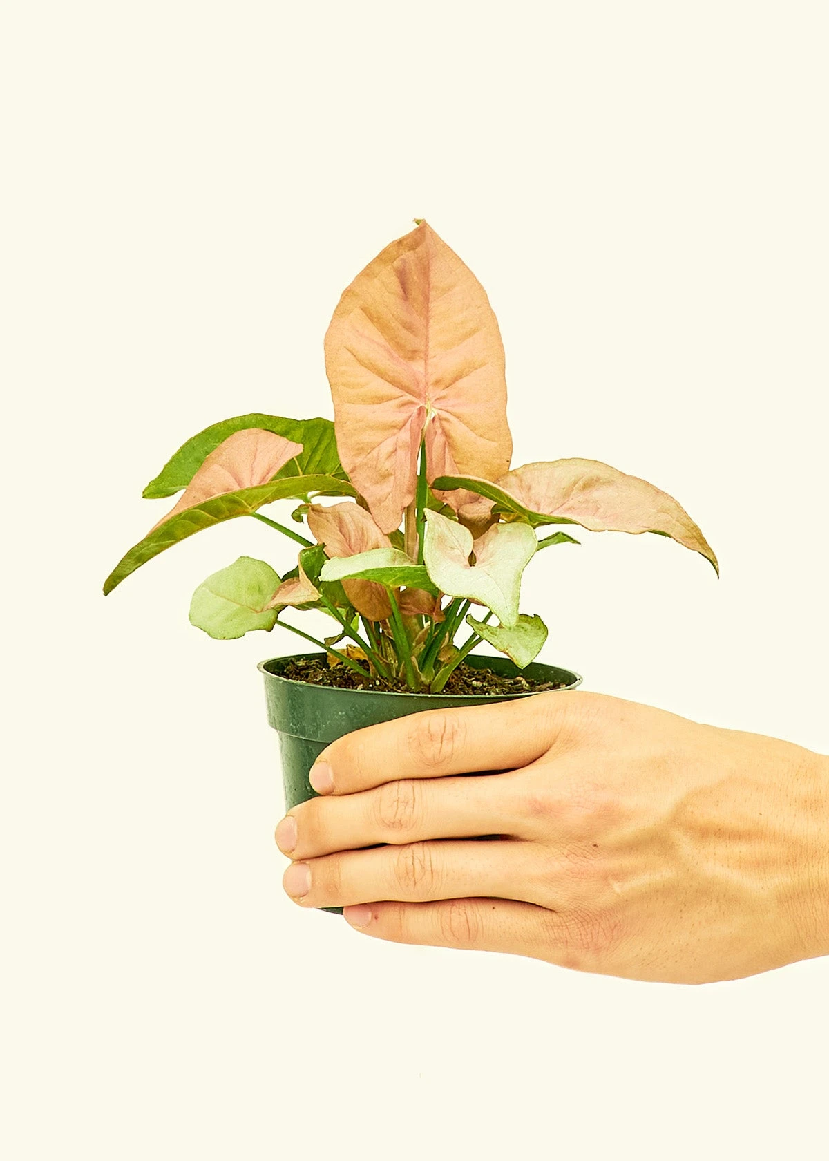 A bold and beautiful part of the arrowhead family. It’s low-maintenance, thrives in ambient light, and forgiving if you miss a watering. The lush, pink leaves add color to your collection.