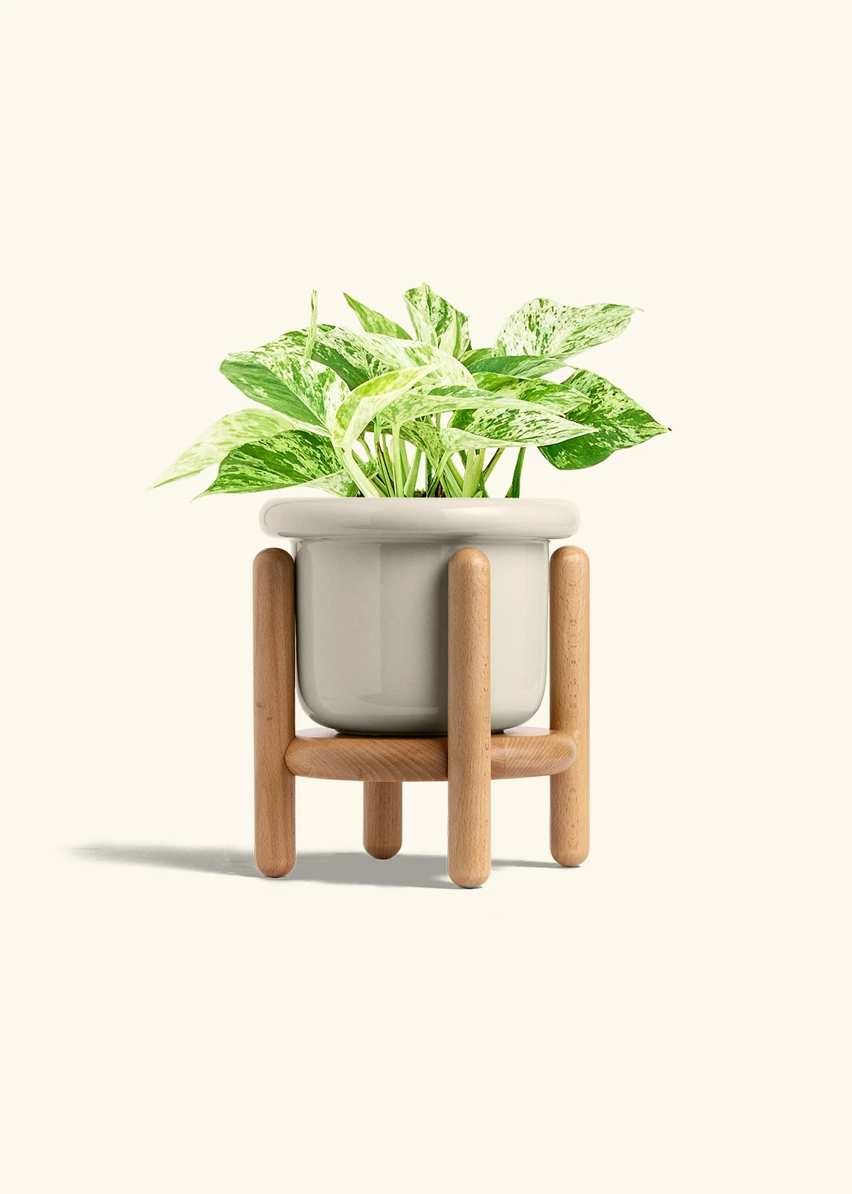 This pothos is beautiful, resilient, and adaptable. Each leaf is brilliantly green with white, marbled variegation. Extremely easy to care for, this fast grower can climb or vine.