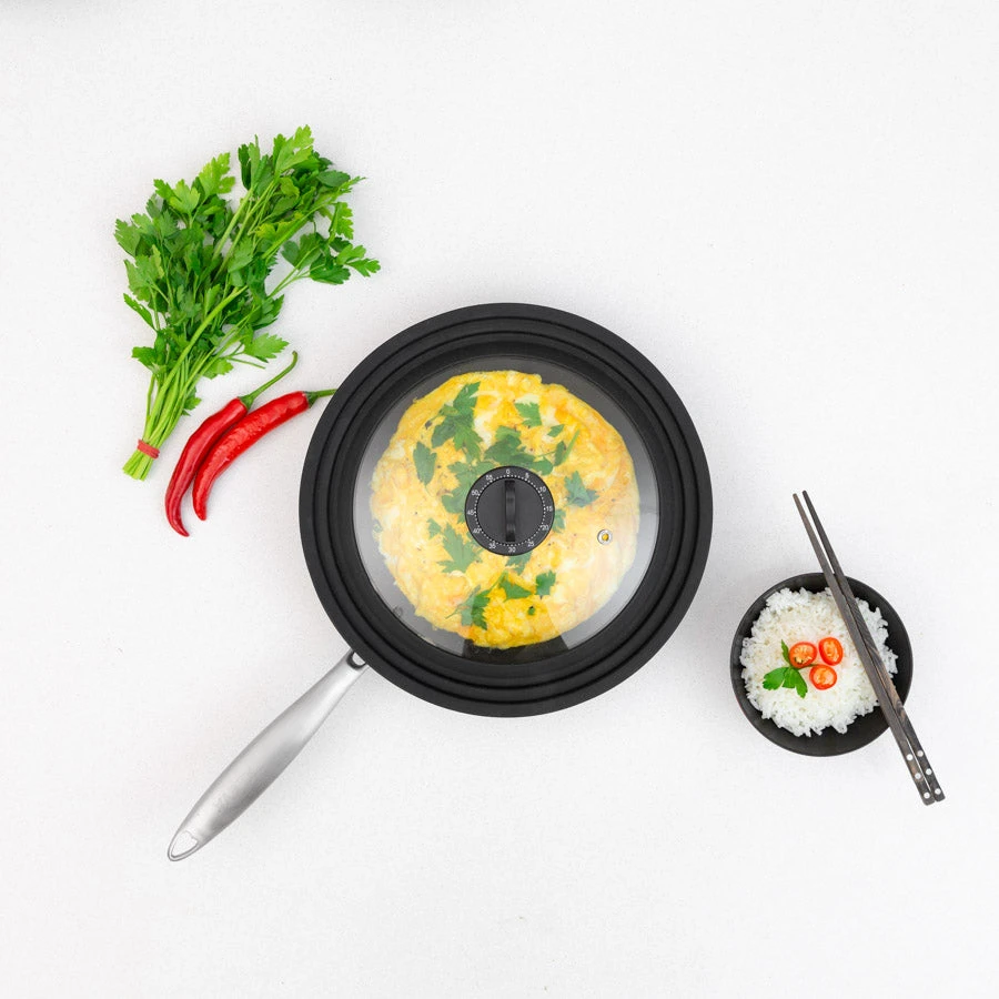 Take the guesswork out of cooking with the new, innovative Universal Glass Lid With Timer!